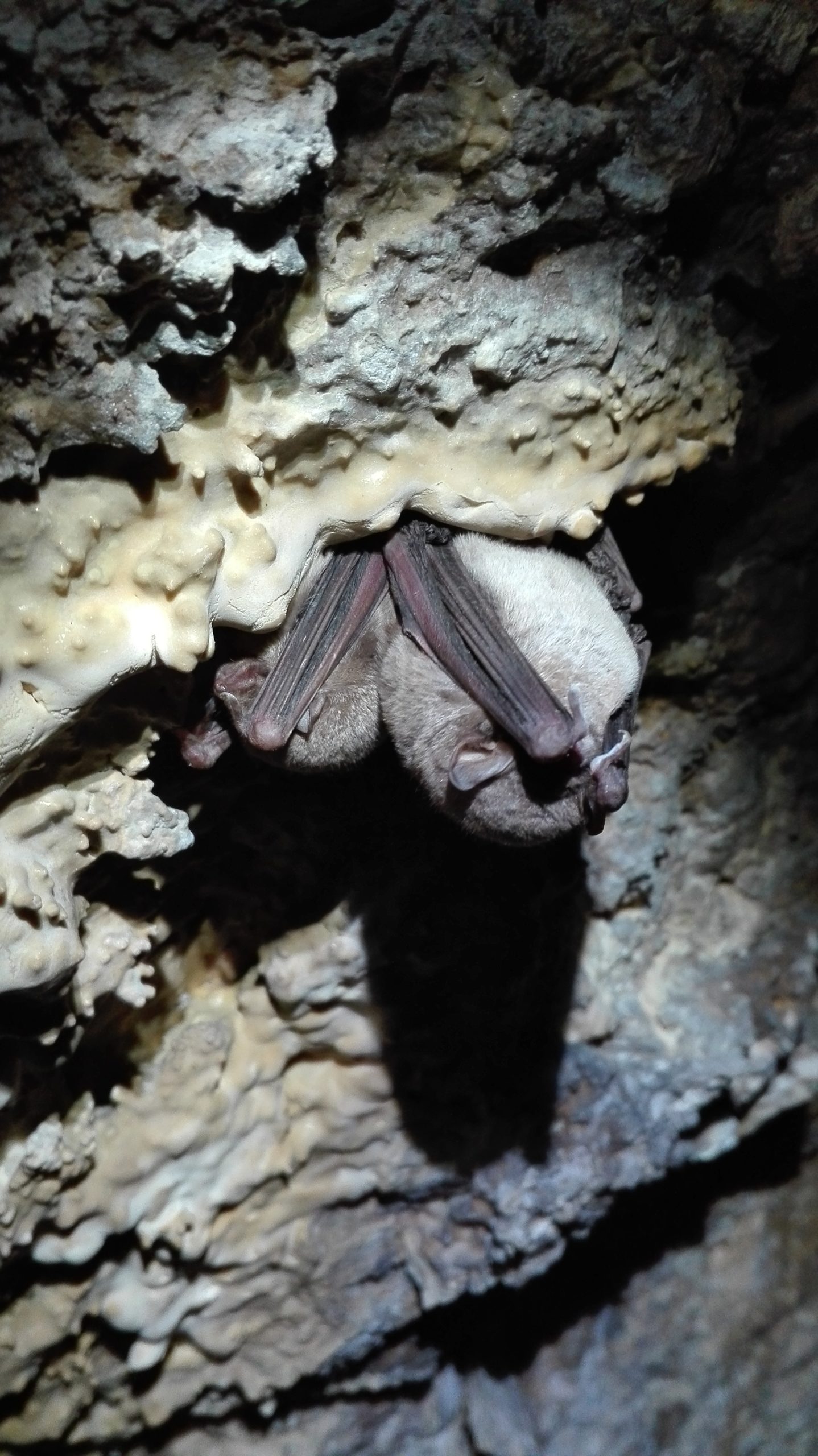 Es divertido ver como a esta cueva, situada en Sierra Espuña y perteneciente al término municipal de Alhama de Murcia, a poca distancia del trasvase Tajo-Segura, se la conoce de tantas maneras diferentes: Cueva de la Pólvora, Laminador de las Niñas, Cueva de la Visera, Cueva de las Narices y Cueva de los Morciguillos. ¿Os gusta jugar con la toponimia?… Es divertidísimo tratar de averiguar el motivo que conduce a dar un determinado nombre a un lugar, y más aún cuando averiguas la respuesta. Para aquellos que no sois de la región, por ejemplo, os puedo decir que un morciguillo es un murciélago, y es que en el interior de la cueva puedes encontrarte con varios coleópteros haciendo la siesta… ¡Intenta no molestarles demasiado, déjalos dormir! Quizás, su nombre principal -Cueva de la Pólvora-, tenga relación con la Guerra Civil. Quizás fue utilizada como polvorín… ¿Jugamos a los detectives?